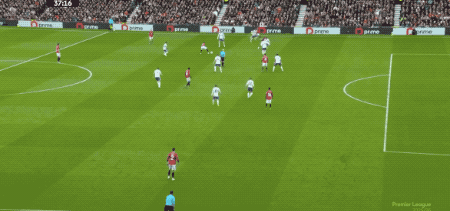 第21分钟,B费开出角球,马奎尔头球摆渡,阿玛德的头球攻门颇具威胁,马丁内斯飞身将球挡出。